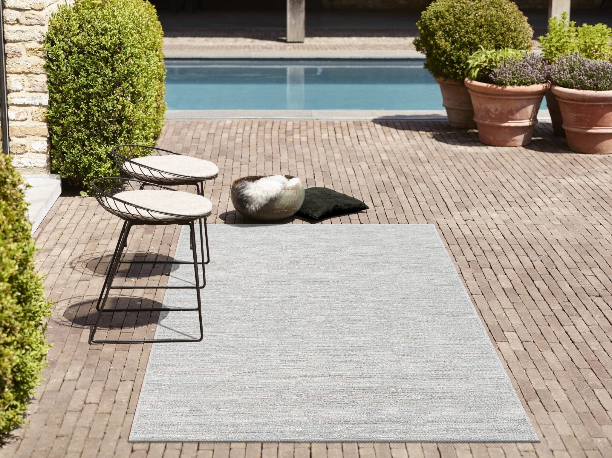 Tæpperne fåes i en lys beige farvetone – en blålig farvetone og en lilla farvetone.